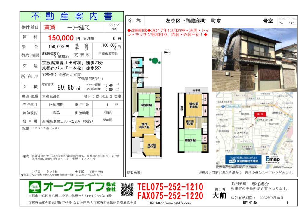 - TEL:075-252-1210FAX:075-252-1220Mail:info@oaklife.com(担当:大前温彦)