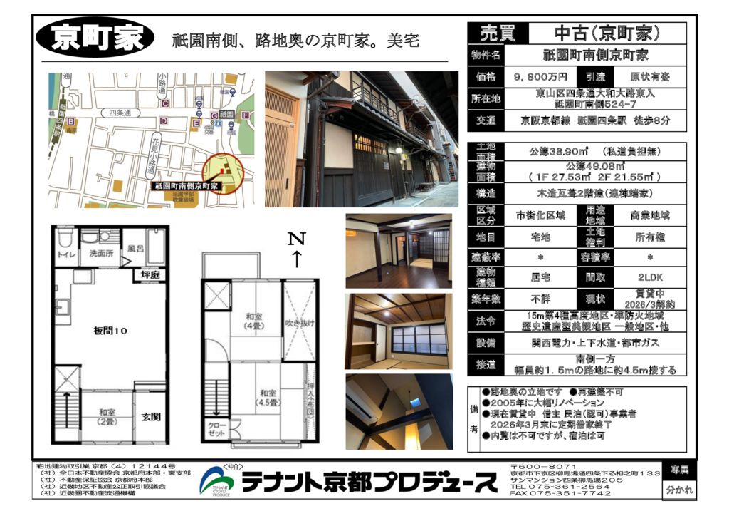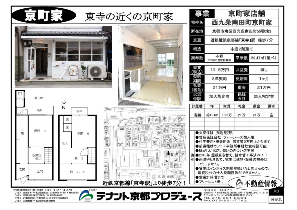 - TEL:075-361-2564FAX:075-351-7742Mail:info@tenant-kyoto.jp(担当:足立 磨砂幸)